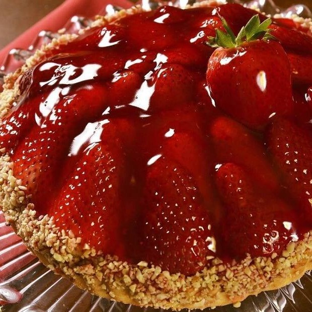 Tora de morango, recehio creme de baunilha e morangos. Aprox 400g