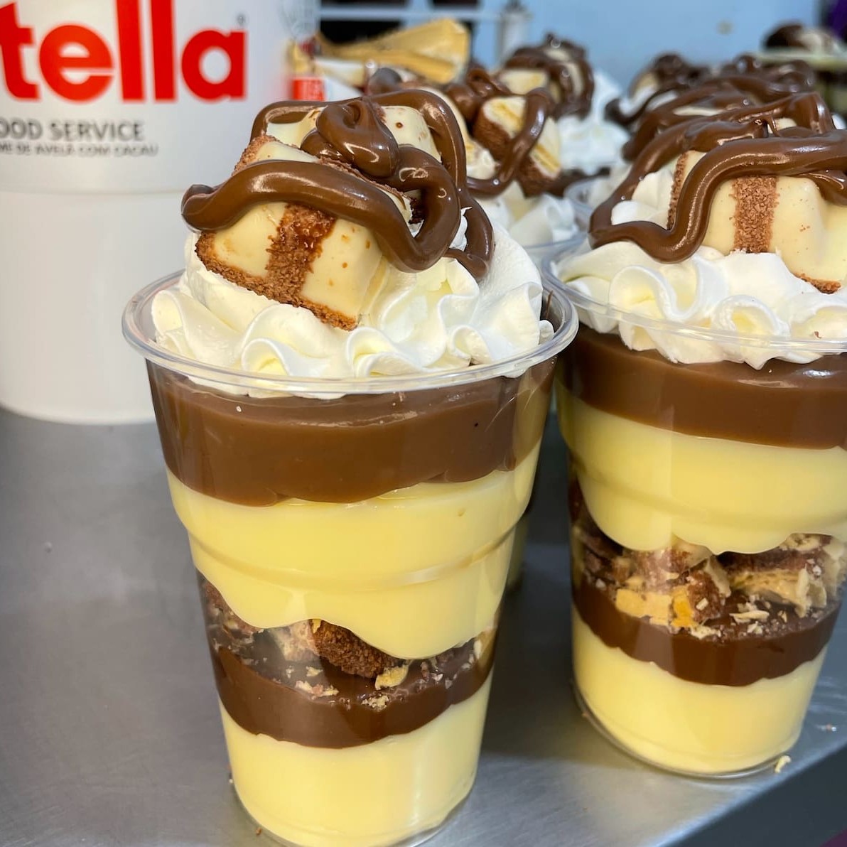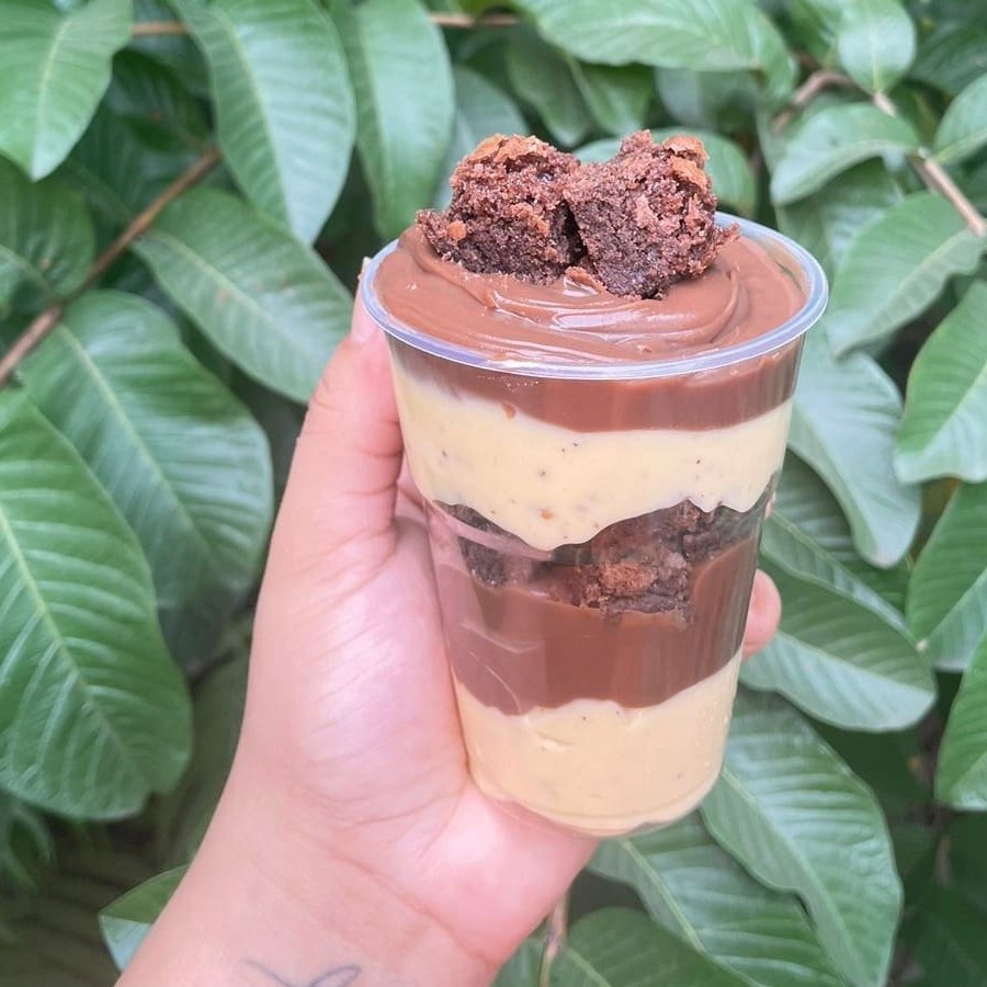 Copo composto por Ninho , brigadeiro , Nutella e brownie.
