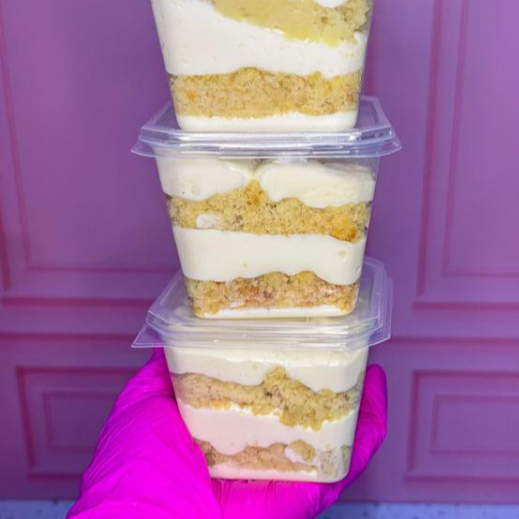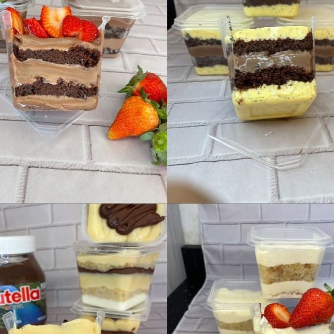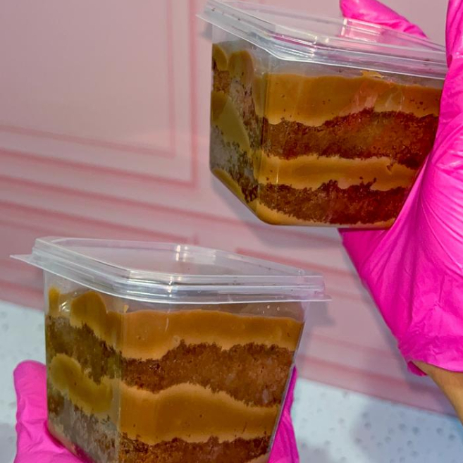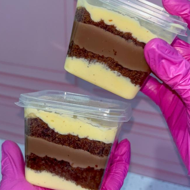 Deliciosa massa de baunilha, recheio de doce de leite caseiro , com uma camada de mousse de Ninho. Pote de 250ml