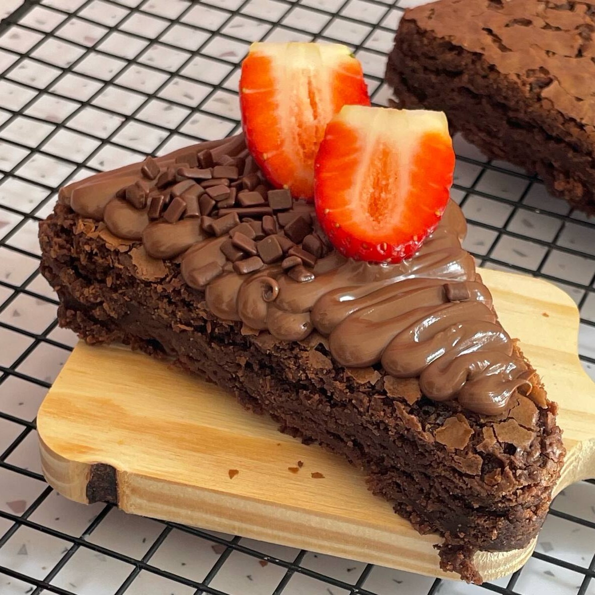 Deliciosa massa de chocolate caseira, recheio de brigadeiro gourmet.