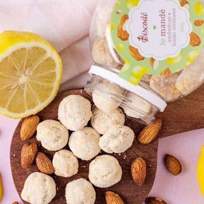 O Le mandê é um biscoito amanteigado feito com amêndoas e limão siciliano. Seu sabor marcante traduz o equilíbrio perfeito entre o doce e o cítrico. Sua textura traz a sensação de explodir dentro da boca.