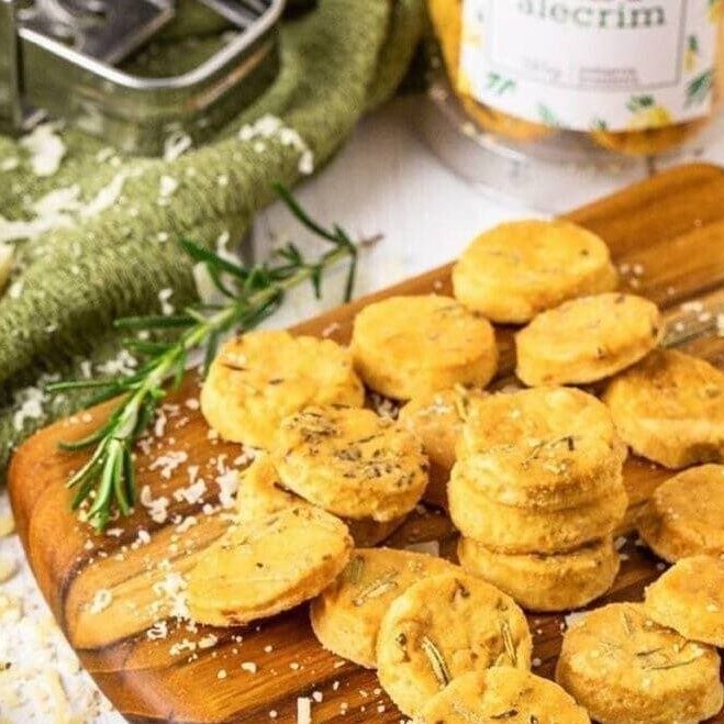 Esse biscoito possui uma casquinha crocante devido ao parmesão, e o alecrim trás sabor e aroma inesquecível!