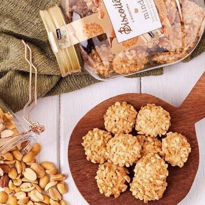O Mindô é um biscoito de textura sequinha e super crocante, coberto com pequenos pedaços de amendoim, ideal para acompanhar um café e trazer ainda mais sabor para o seu Dia.