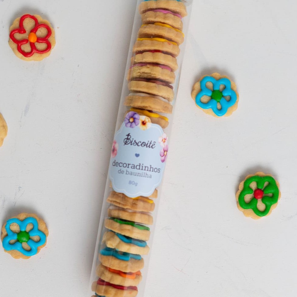 Lindos e divertidos, não tem como não se apaixonar por estes biscoitos deliciosos. Nossos minis decorados de flores com sabor amanteigado e a decoração em glacê fazem com que eles sejam os queridinhos entre as crianças.