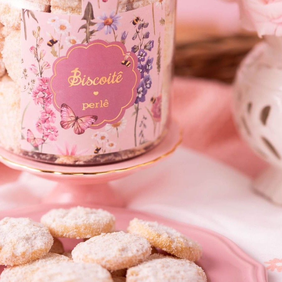 O biscoito Perlê é leve saboroso, e açucarado.Sua massa que derrete na boca e sua cobertura com açúcar de confeiteiro gelado é o toque especial para você se apaixonar por esse Biscoitê.