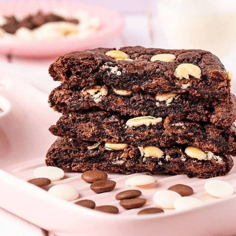 3x mais gostoso! Massa de chocolate e gotas de chocolate branco e meio amargo transformam esse cookie em sinônimo de tentação!