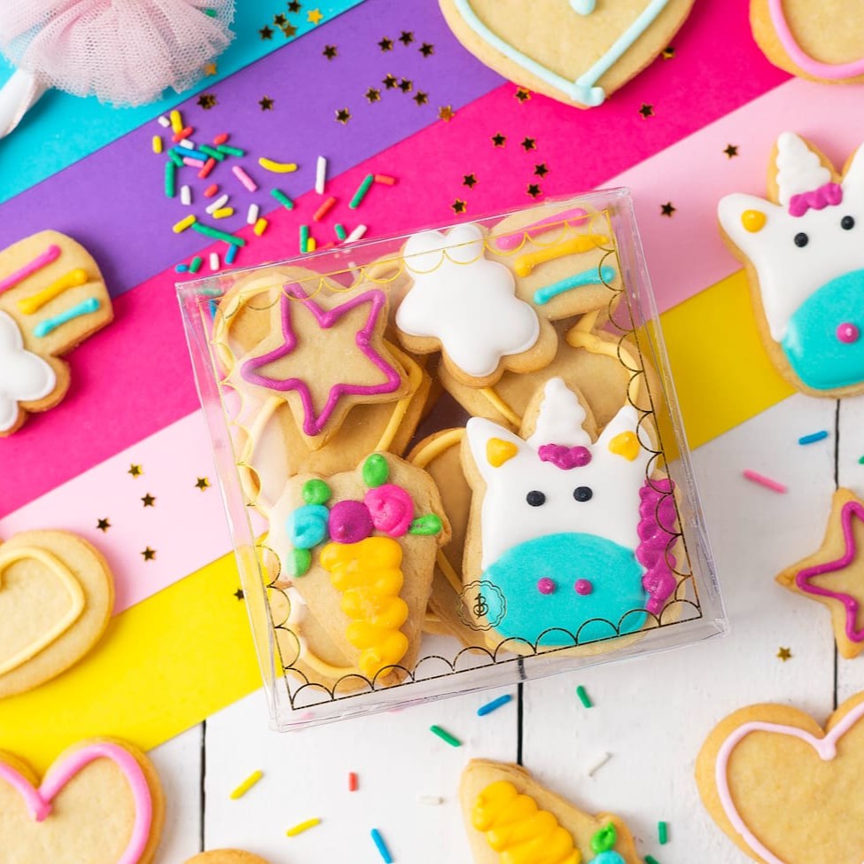 Lindos e divertidos, nossos decoradinhos de Unicórnios não tem como não se apaixonar por estes biscoitos deliciosos! O sabor amanteigado e a decoração em glacê fazem com que eles sejam os queridinhos entre as crianças.