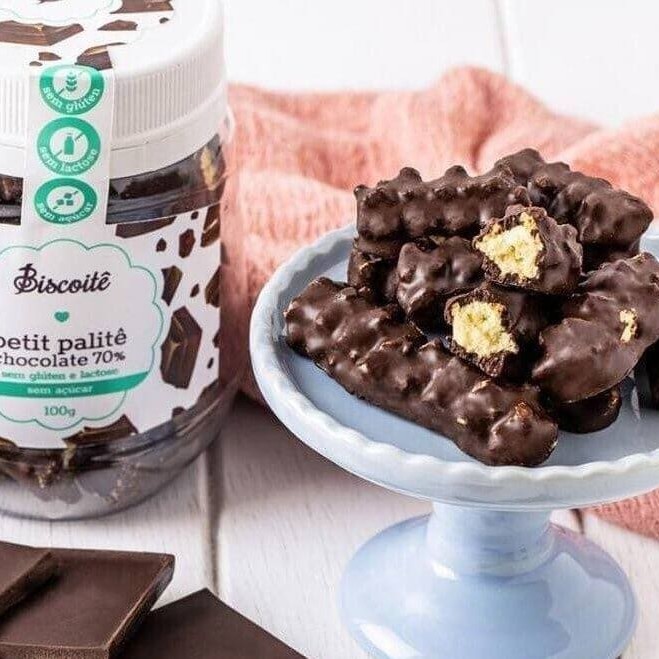 Feito especialmente para os amantes de chocolate amargo, criamos o sequilho coberto com chocolate 70% cacau, uma mistura deliciosa que você nem irá acreditar que é sem glúten, sem lactose e sem açúcar.