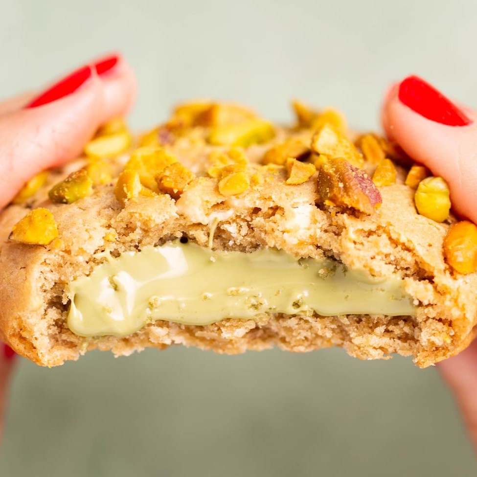 Descubra a perfeição em cada mordida com nosso novo Soft Cookie recheado de creme Pistachê e pedaços crocantes de pistache. Uma explosão de sabores em um único biscoito. Experimente agora