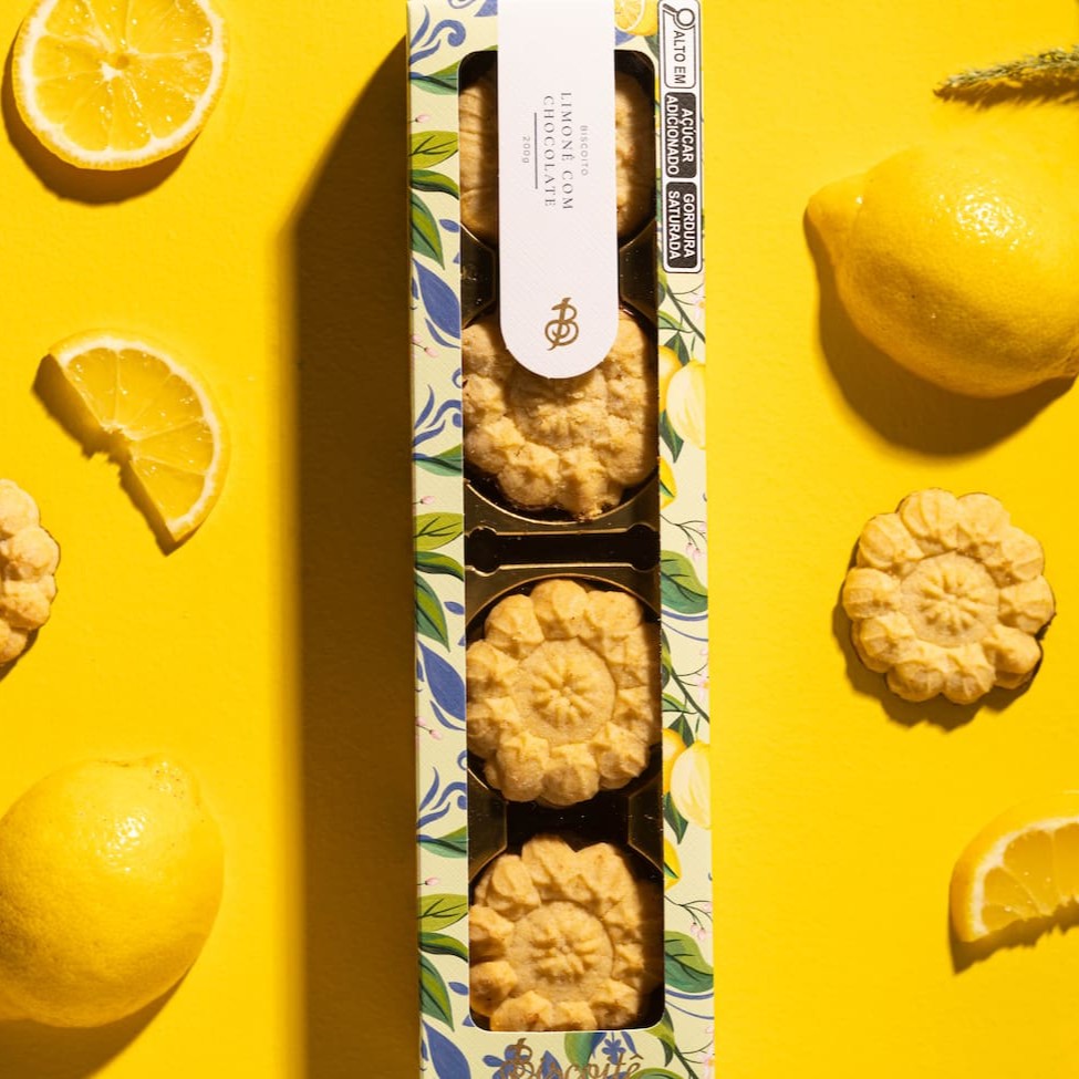 O biscoito mais amado da Biscoitê – Massa leve e macia, feita com limão siciliano fresco e fubá, finalizada com cristais de açúcar e uma base de chocolate.