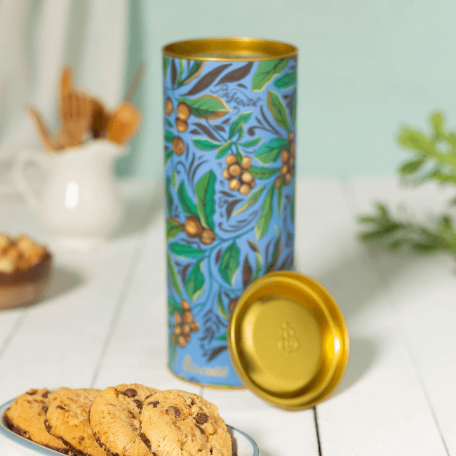 Descubra a perfeição em cada mordida com nosso irresistível Cookie de Macadâmia com chocolate ao leite. Em nossa elegante Fibra Lata Clássica este cookie encanta todos os paladares com o equilíbrio perfeito entre o crocante das nozes de macadâmia e a doçura do chocolate. Ideal para presentear com estilo e saborear momentos únicos.