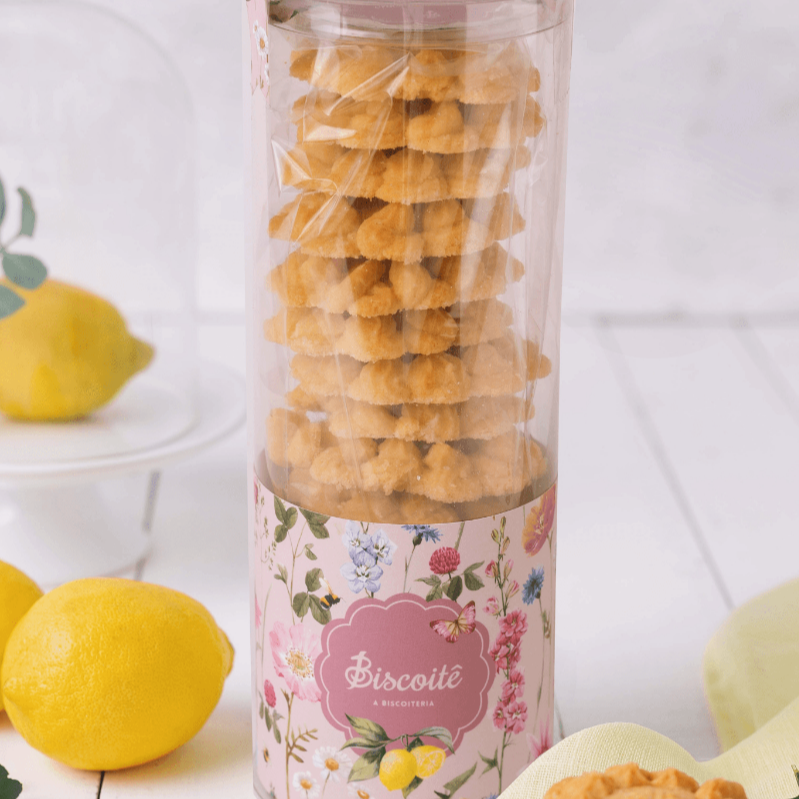 O Limonê é um dos nossos biscoitos mais amados e já virou um clássico da Biscoitê. A massa é macia e delicada, feita com fubá e limão siciliano. O toque final fica por conta dos pequenos cristais de açúcar, que arrematam o sabor.