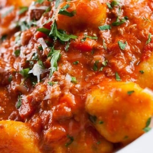 Delicioso nhoque integral com molho de tomate.