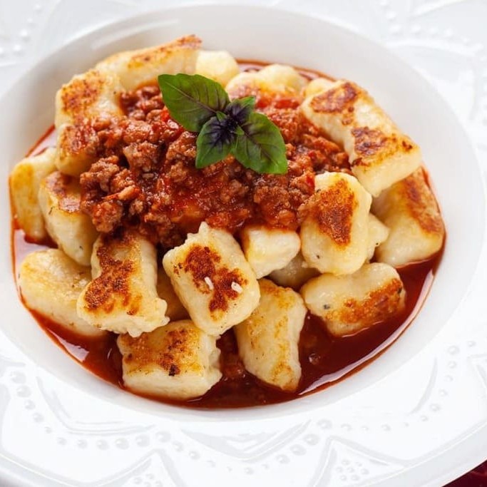 Delicioso nhoque de batatas sem glúten com molho de tomate.