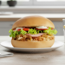 Pão brioche, carne artesanal,cebola empanada,cheddar,alface e tomate.