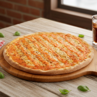 FRANGO BACON MUSSARELA E AZEITONAS E OREGANO