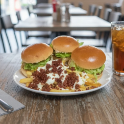 Pão brioche,cheddar,carne artesanal,doritos tomate e alface