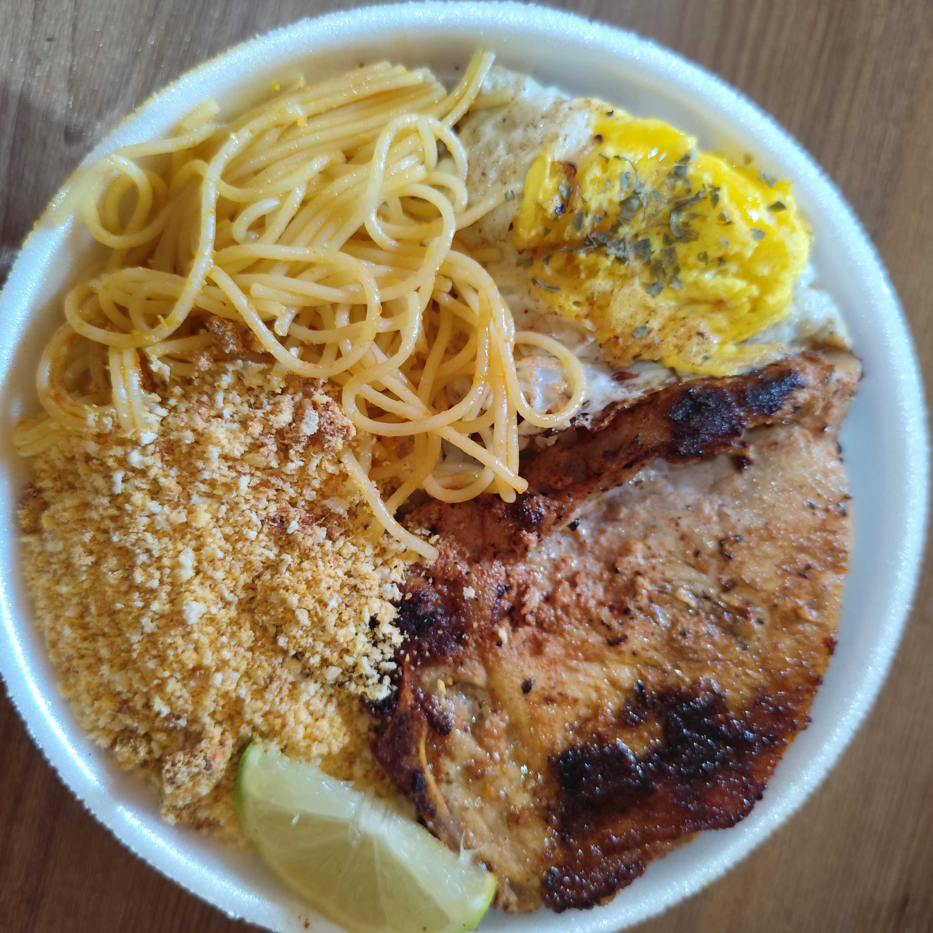 Arroz, Feijão, Bisteca na Manteiga, Farofa e Salada