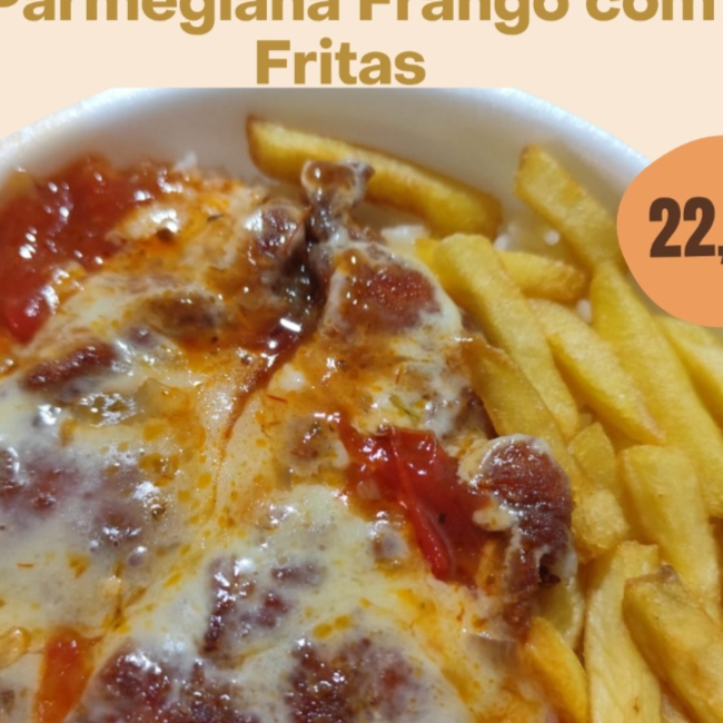 Arroz, Feijão, Parmegiana de Frango Filé com Batata Frita e Salada