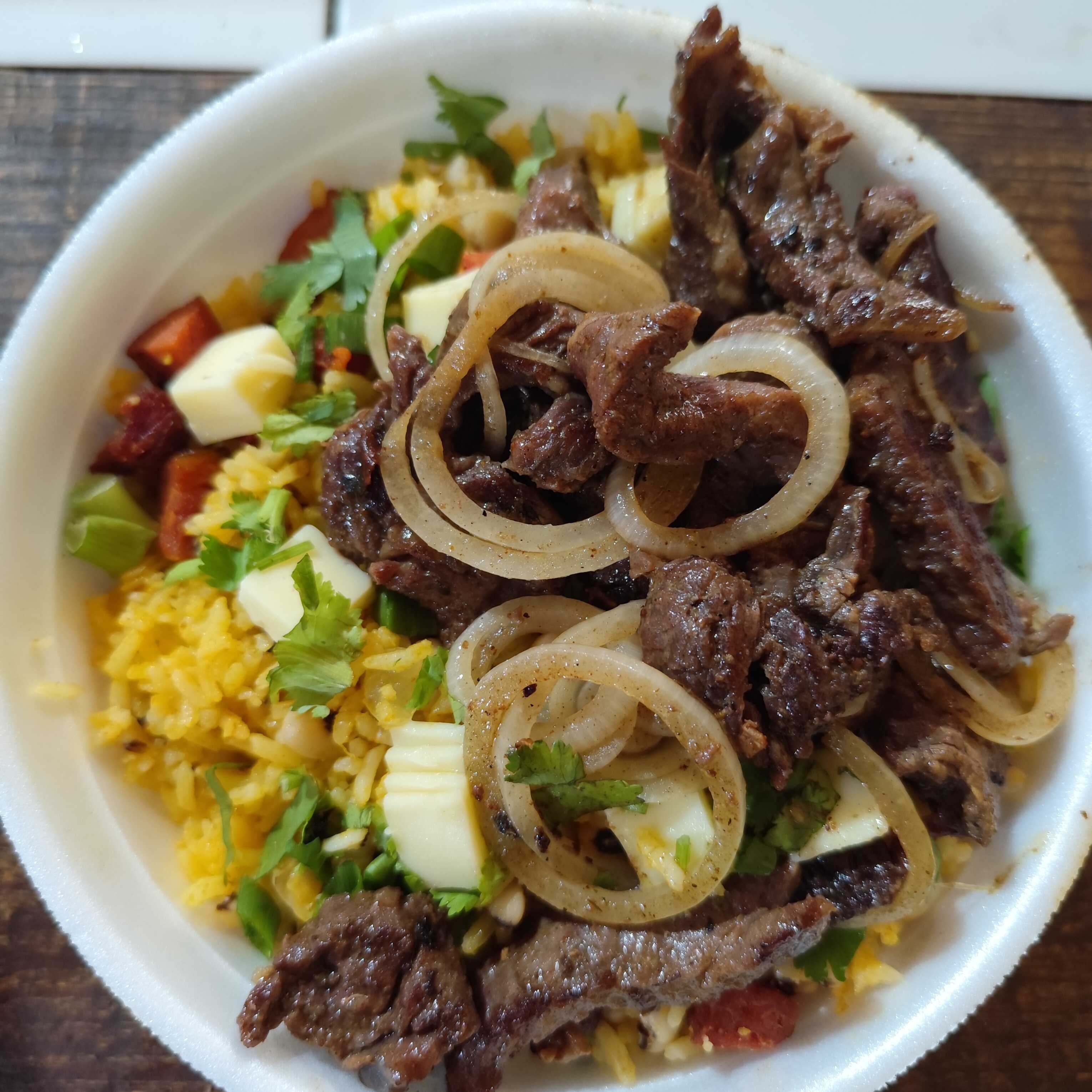Baião com feijão de corda, arroz, calabresa, linguiça, queijo, coentro, cebolinha e nossos temperos