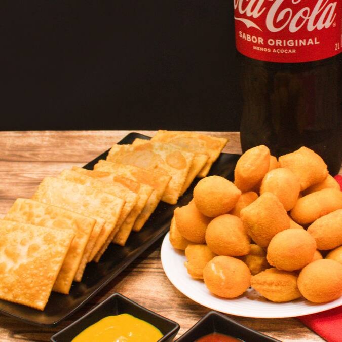30 Salgados + 30 Pasteis + 1 Refrigerante 2 Lt