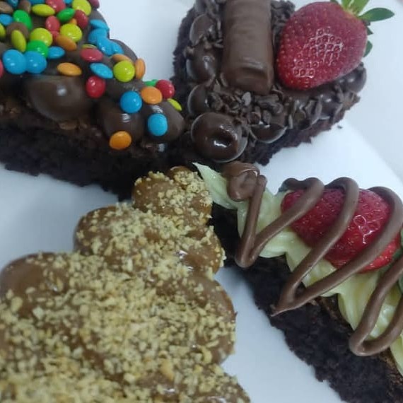 São 4 fatias do nosso delicioso brownie, com as coberturas que você preferir! Brigadeiro de Ninho, brigadeiro ou doce de leite!