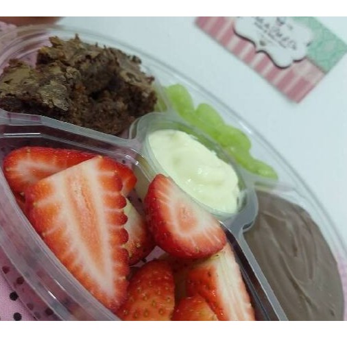Ganache de chocolate frio, dadinhos de brownie, brigadeiro cremoso de leite Ninho, morango e uva fresquinhos!!!