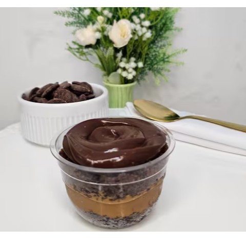 Mousse de chocolate, ganache de chocolate ao leite, brownie, creme alpino, chocolate a sua escolha e flocos de Ovomaltine! Tudo isso em um copão de quase meio kilo! É uma explosão de sabor!