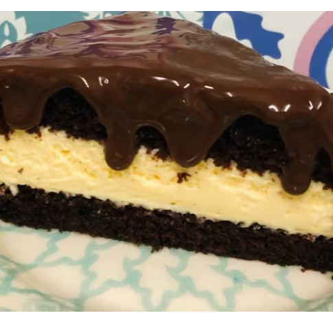 Deliciosa massa de bolo de chocolate recheada com aerado mousse de maracujá e cobertura de ganache de chocolate ao leite. Serve 1 pessoa (250g)