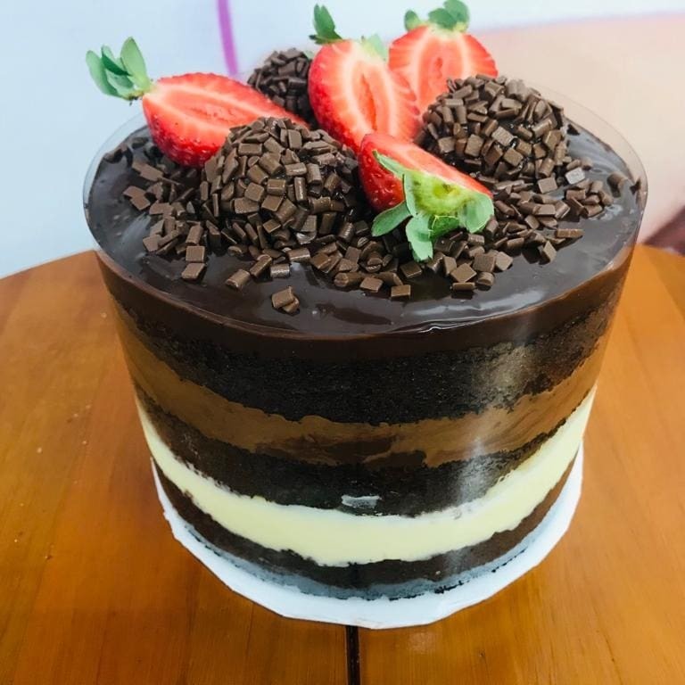 Massa artesanal de chocolate, delicioso creme cremoso de brigadeiro, mousse artesanal de Ninho e Nutella Original