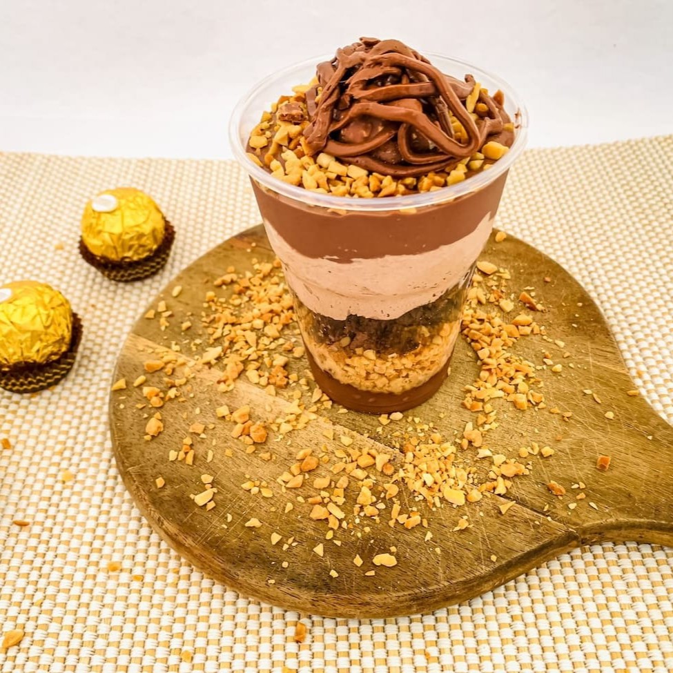 Maravilhoso copo da felicidade, composto por nosso delicioso mousse artesanal , Nutella Original, brownie artesenal de chocolate, incrivel creme de brigadeiro, pedaços de ferrero rocher, e finalizados com castanha de caju, fazem desse copo felicidade, um dos mais vendidos e amados da casa. (200ml)