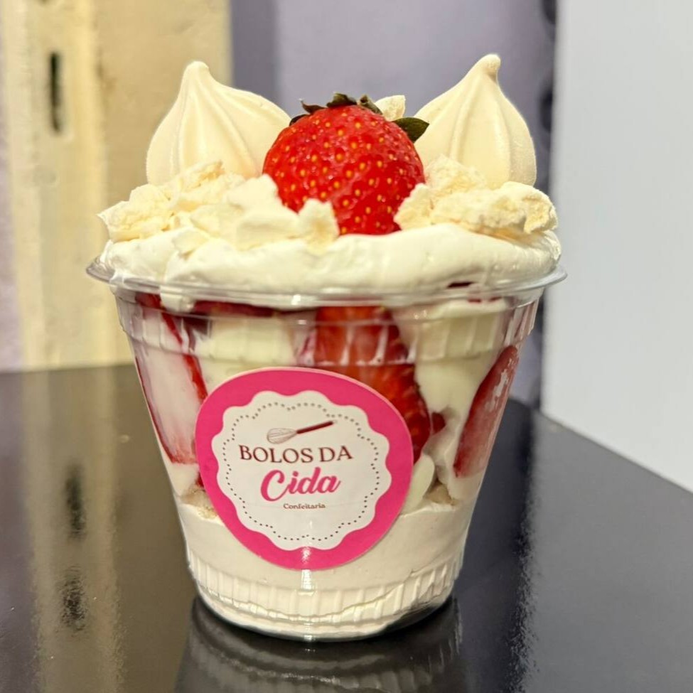 Creme de ninho, chantininho, suspiros e morangos. 250ml