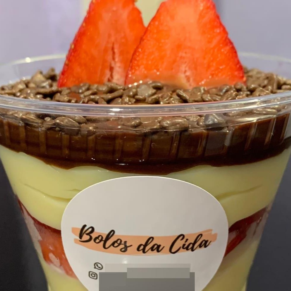 Brigadeiro ao leite, mousse de chocolate, chatininho, Sonho de Valsa, brownie e morango. 400ml