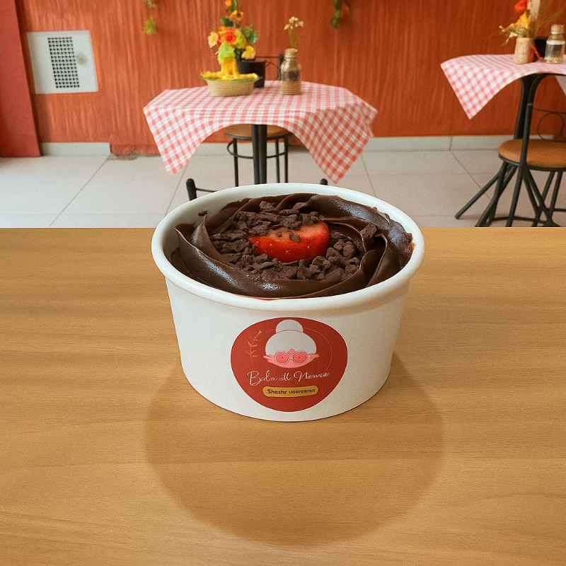Bolo de pote feito com uma camada de massa de bolo produzida com cacau 100% da callebaut coberta com uma generosa camada de brigadeiro gourmet e pedaços de morangos frescos selecionados. (Embalagem 220ml)
