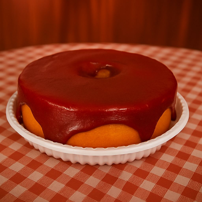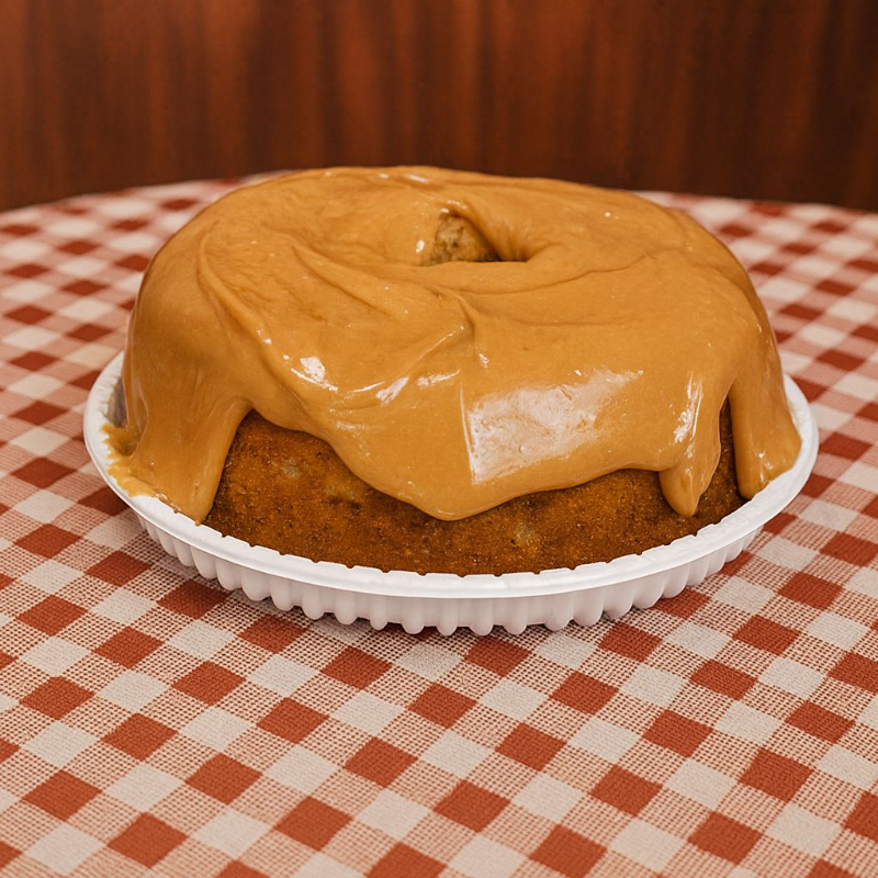 Nosso bolo caseiro feito com a própria fruta e um toque de canela 100% caseiro serve ate 10 fatias.