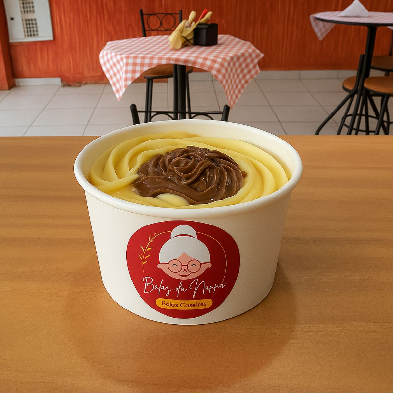 Bolo no pote feito com uma camada de massa de bolo de baunilha coberta com Nutella pura Original e brigadeiro de Ninho cremoso (embalagem 220ml)