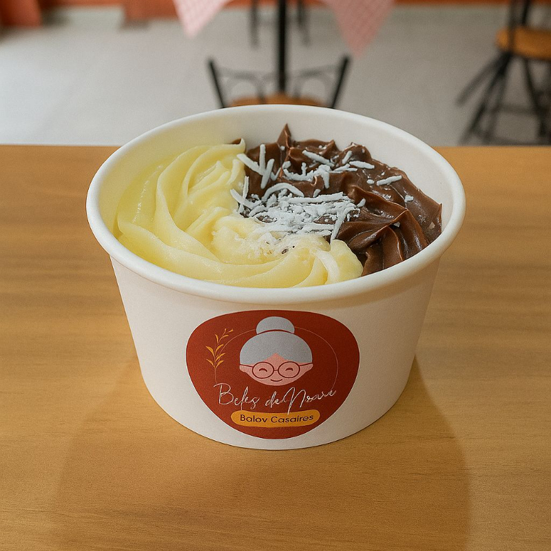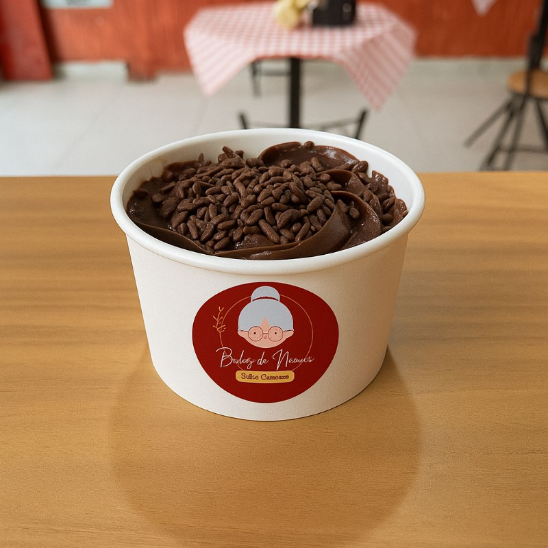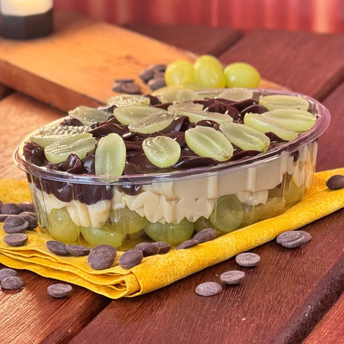 Brigadeiro de Ninho cremoso, pedaços de uvas verde sem sementes, finalizado com o autêntico brigadeiro gourmet. O doce é enviado em um pote com a capacidade de 1l, o peso final varia de acordo com a densidade do recheio, pote vai cheio.