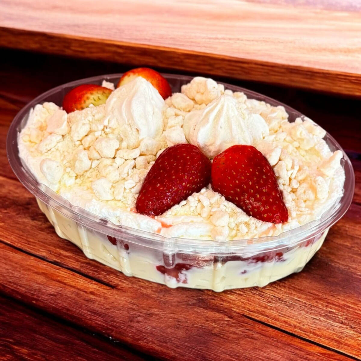 Brigadeiro de Leite Ninho cremoso, morangos frescos, suspiros artesanais, chantilly Norcau super cremoso Preparado no momento em que recebemos seu pedido, garantindo um doce fresquinho. Essa delícia é enviada em um pote com capacidade de 1l, repleto até a borda. O peso varia de acordo com a densidade dos recheios. 2l não são 2kg