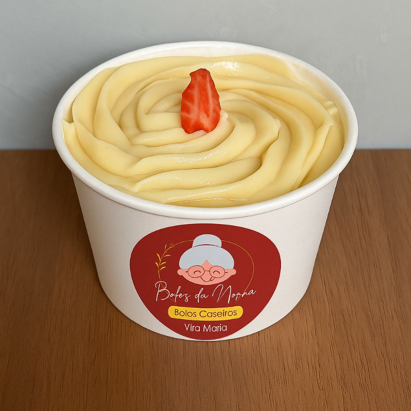 Bolo no pote feito com uma camada de massa de bolo de baunilha regada com calda de leite condensado, finalizado com brigadeiro de Ninho cremoso e nosso autêntico brigadeiro gourmet.