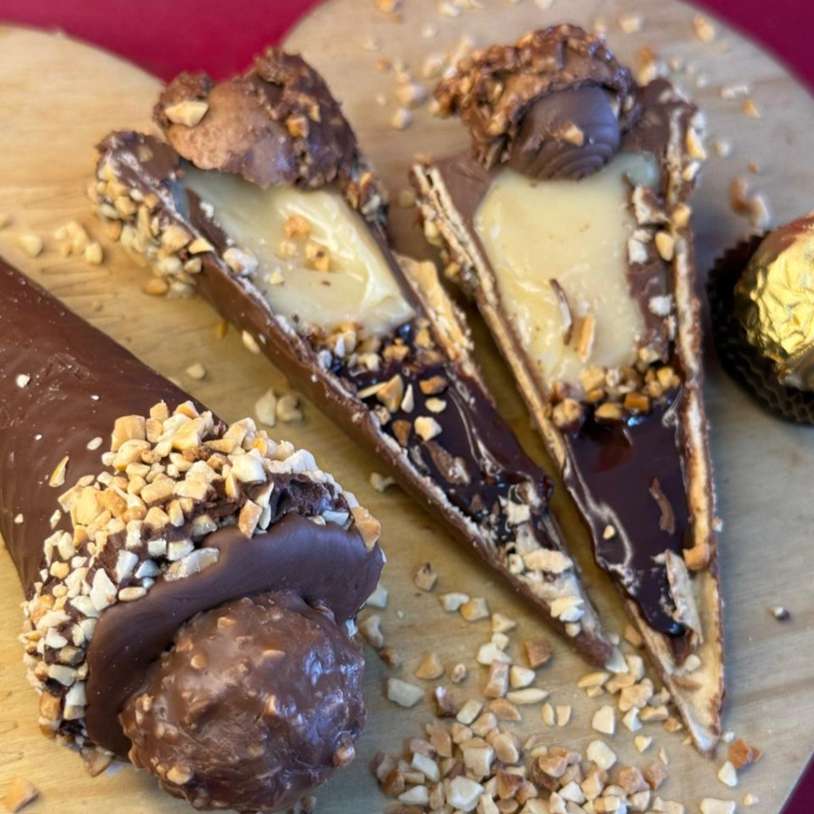 Deliciosamente preparado com um Cone banhado no Chocolate ao Leite, generosamente recheado com Brigadeiro Branco, Nutella, pedaços de Ferrero Rocher Original e finalizado com Amendoim triturado. . . . ###Tags### promoção promocao oferta desconto barato melhor bolo no pote doce copo da felicidade sobremesa chocolate cupon cupom entrega rapida grátis gratis nutela Nutella Ninho morango Oreo red velv