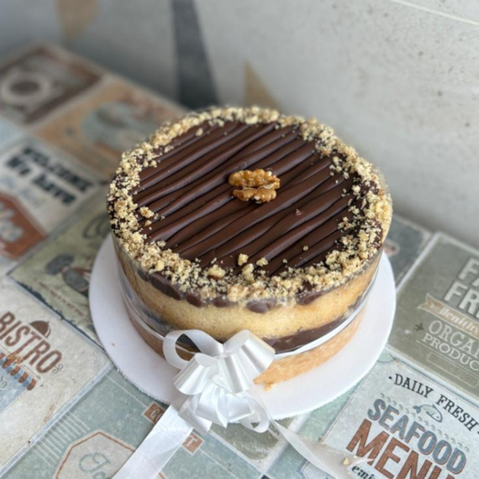 Massa de baunilha recheada de doce de leite e nozes trituradas. Aproximadamente 1kg