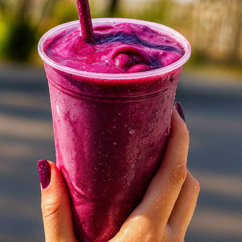Açaí batido com leite, cremoso e geladinho, servido no ponto perfeito! 🫐💣 E o melhor: você escolhe 3 adicionais grátis pra deixar do seu jeito