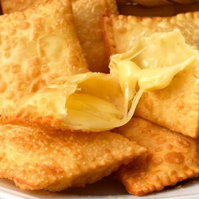 Delicioso pastel de queijo bem fritinho, crocante por fora e bem recheado por dentro!