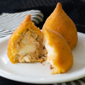 Deliciosa Coxinha recheada com um frango suculento e saboroso, e requeijão lanche perfeito com uma coca cola bem gelada ou um café da tarde.