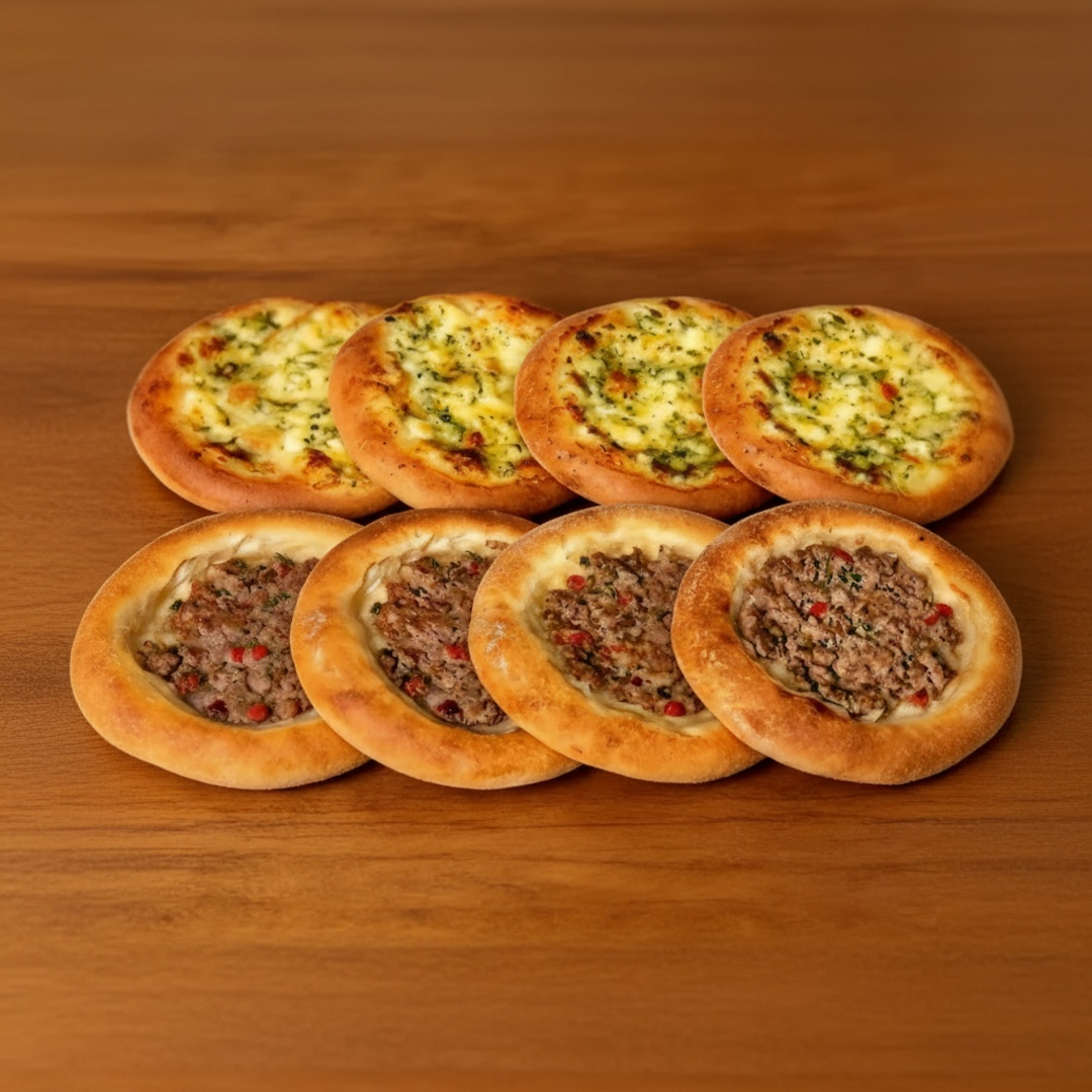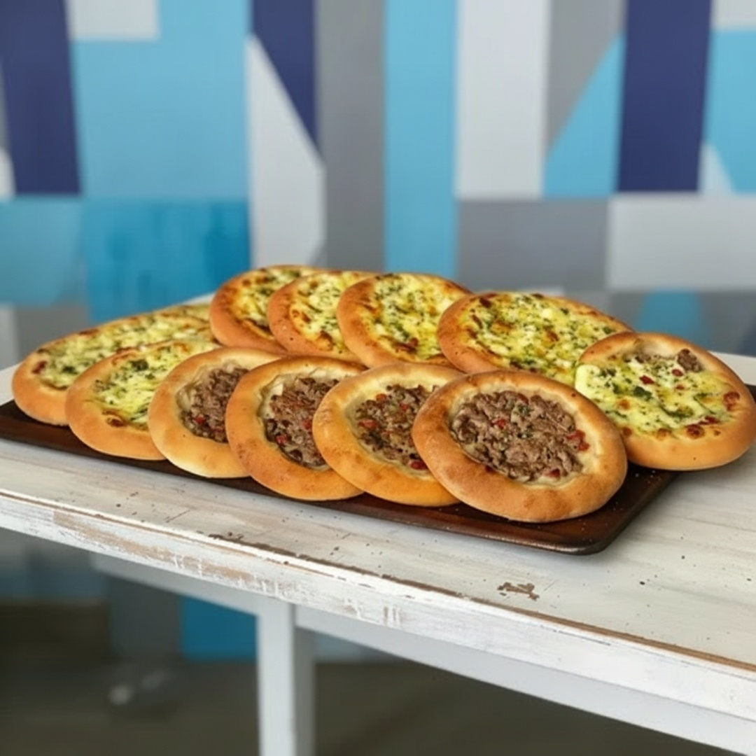 5 esfihas de carne e 5 esfihas de queijo