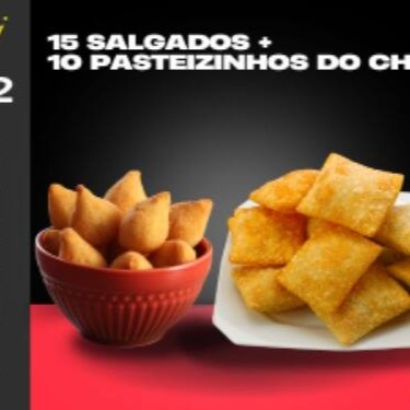 Combo: 15 Salgados do Chefe + 10 Pasteizinhos do Chefe. Escolha os sabores dos salgados (frango, queijo, presunto e queijo, carne ou calabresa) e dos pasteizinhos (carne ou queijo).