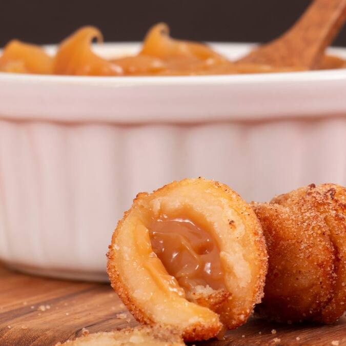 20 Churrinhos do Chefe. Escolha os sabores: doce de leite, chocolate e beijinho.