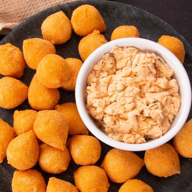 50 Salgados do Chefe. Escolha os sabores: frango, queijo, presunto e queijo, carne e calabresa. (CADA 1 SABOR ESCOLHIDO VEM O TOTAL DE 10 SALGADOS DO CHEFE ATÉ ACUMULAR 5 ESCOLHAS, TOTAL DE 50.)
