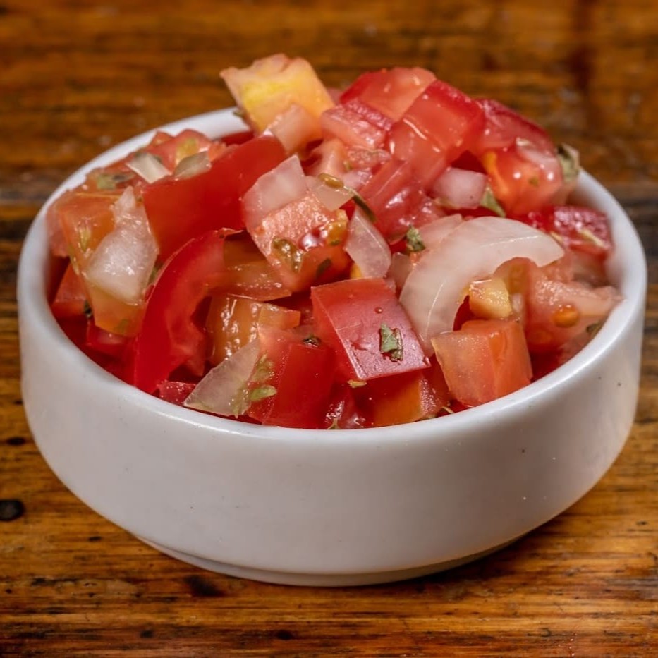 Queijo e vinagrete servido no Pão Frances. Acompanha Batata Frita