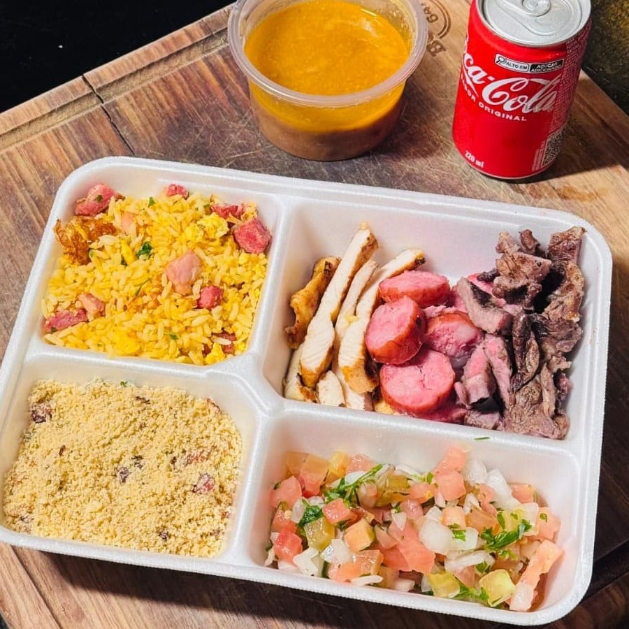 Novidade noboteco 647, tiras de carnes, tiras de frango e linguiça. nosso famosos arroz biro biro, farofa da casa e vinagrete